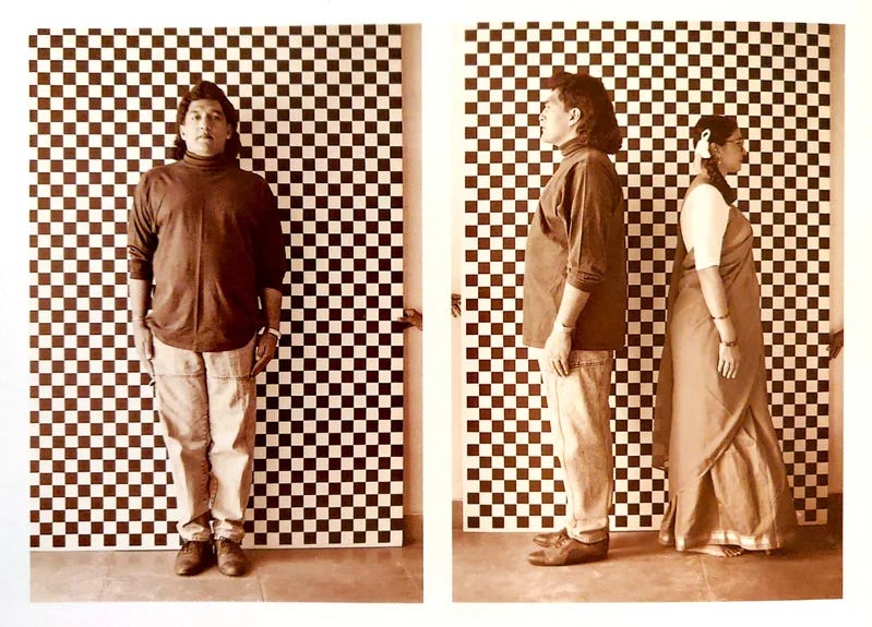 There is a photo at the start of this essay. It is by Pushpamala N,. a Bengaluru-based Kannada visual artist I found a few years ago at a book fair in Manhattan through Reliable Copy, an Indian press that had reprinted her English-language dissertation.