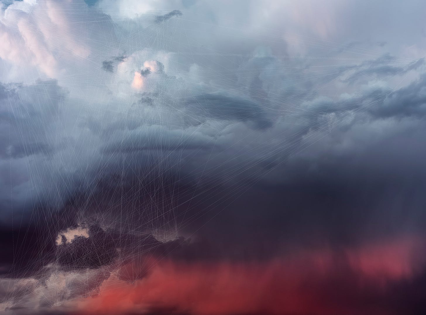 Trevor Paglen, CLOUD #135, Hough Lines, 2019 (made by pointing a computer vision algorithm at photos of clouds, and tracing the strokes and lines that the machine is seeing)